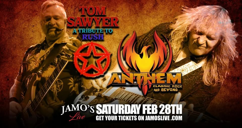 Rush Tribute Tom Sawyer & Anthem @ Jamo’s Live+ Add to Google Calendar+ iCal / Outlook export 00days 00hours 00minutes 00seconds DateFeb 28 2026 Time 7:30 pm - 11:30 pm Location Jamo's Live10160 191st St, Mokena, IL 60448Share this event
